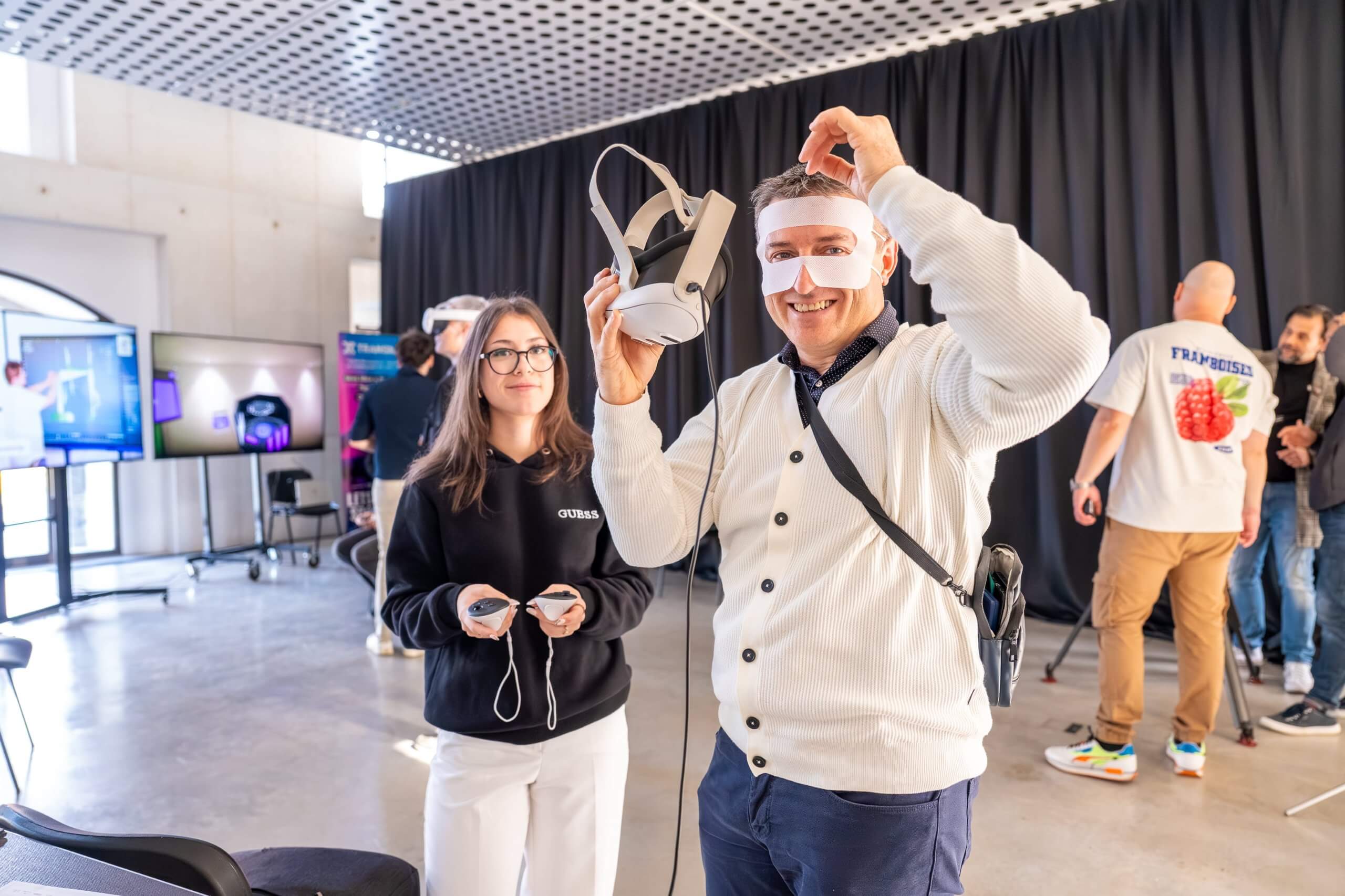 Letošnji program je vključeval tudi okroglo mizo “Navidezna, obogatena in razširjena resničnost v izobraževanju”, ki je med 11.00 in 12.00 obiskovalcem ponudila možnost, da prisluhnejo pogovoru dr. Klemena Pečnika (UL FE), Žane Juvan (UL FE), Marije Absec (UL FRI), Mirjam Oblak (MVI) in Jasmine Mihelak Zupančič (ŠC SKZ), ki ga je moderirala Eva Pečnik. Razprava je naslovila ključna vprašanja, povezana z razvojem in uporabo XR tehnologij v izobraževalnem kontekstu, od trenutnega stanja razvoja XR tehnologij, njihovih obstoječih aplikacijah do potencialnih priložnosti predvsem na področju izobraževanja. Poseben poudarek je bil namenjen vprašanju, kako lahko te tehnologije prispevajo k izboljšanju učnih procesov ter kakšne koristi in tveganja prinašajo.