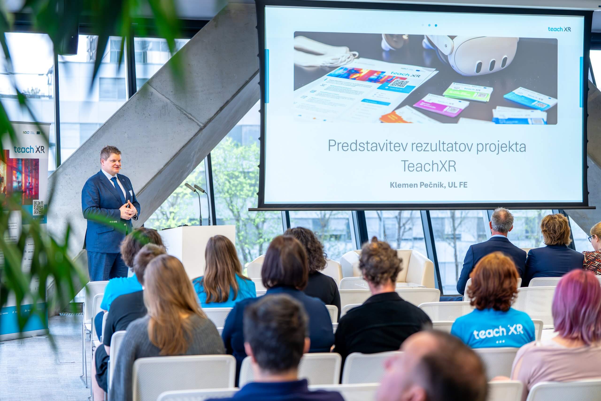 V Kristalni palači je 13. 4. 2026 uspešno potekala zaključna konferenca projekta TeachXR, ki je na enem mestu združila ključne deležnike s področja izobraževanja, industrije in razvoja digitalnih kompetenc. Dogodek je bil odprt za vse, ki jih zanimajo XR tehnologije in njihova dejanska uporabna vrednost – tako v učilnicah kot v sodobnih delovnih okoljih.
